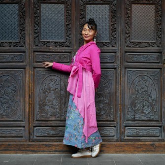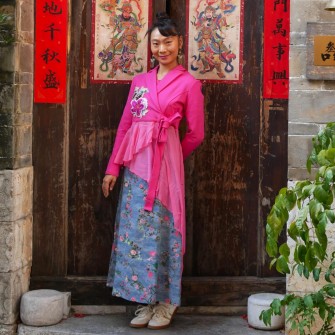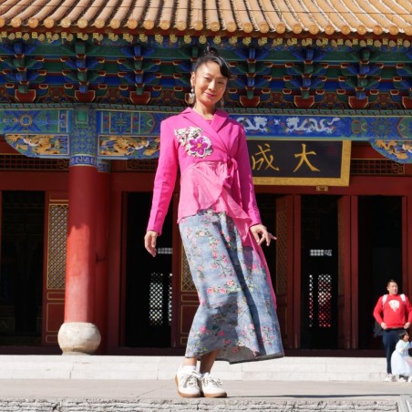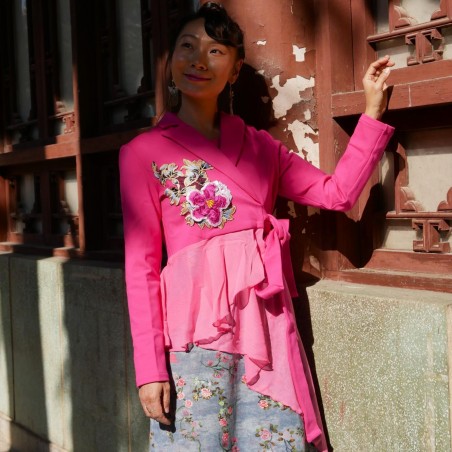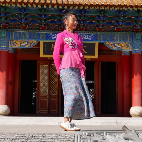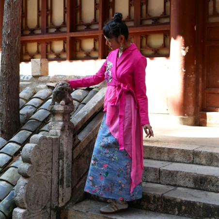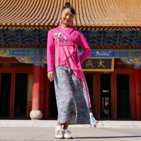 Une blouse aux nuances de bleu profond, évoquant la brume légère des montagnes. La rencontre...
