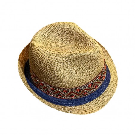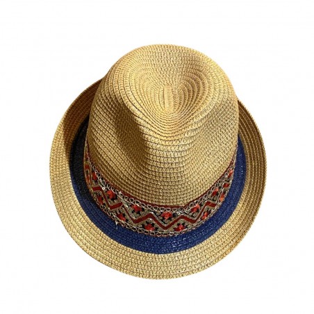 Chapeau de type panama en paille tressée avec décoration de broderie Miao fait-main. Taille...