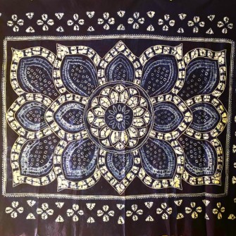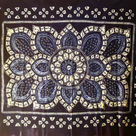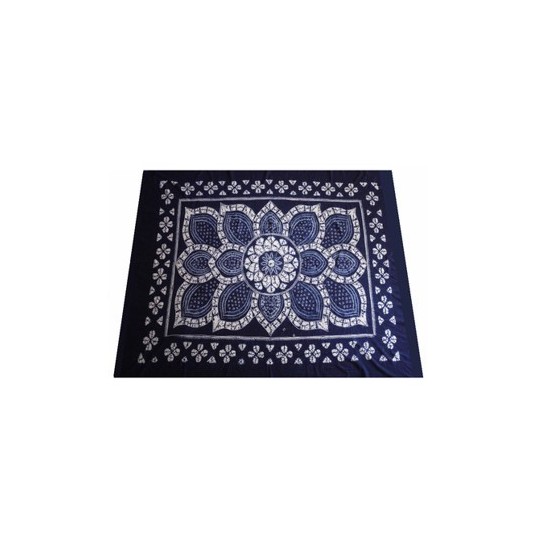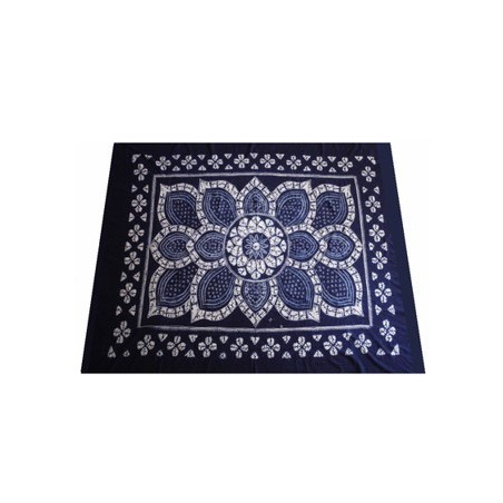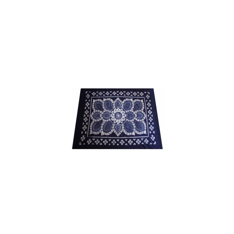 Nappe rectangulaire au Lotus (grande) en batik Bai zharan (indigo, 195x145)
