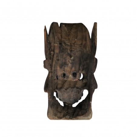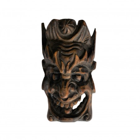 Les masques étaient à l’origine confectionnés par les hommes en bronze, puis plus souvent en bois qui paradoxalement se conservait mieux. A chaque dieu correspondait un masque souvent effrayant, terrifiant et grimaçant donnant au danseur le portant l’apparence d’un esprit divin apte à effrayer les démons. La plupart des masques ont ainsi un aspect hideux et terrifiant, visage déformé, bouche tordue, yeux exorbités ou mâchoires dévorantes.