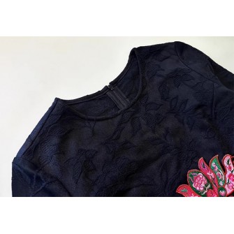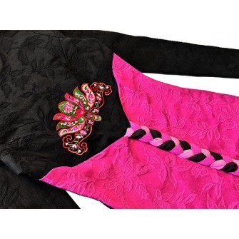 Robe longue brodée. Une fleur de lotus qui symbolise l’amour, la pureté et l’harmonie. Cette robe longue associe un noir profond et un rose fuchsia lumineux. Le contraste des couleurs crée une silhouette élégante inspirée de l’esthétique orientale.