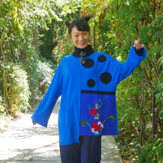 Une blouse aux nuances de bleu profond, évoquant la brume légère des montagnes. La rencontre entre une silhouette épurée et une broderie florale délicate donne à cette pièce une présence à la fois élégante et artistique. Les tons de bleu turquoise et de bleu profond se superposent pour créer un jeu subtil de couleurs. Les pois noirs apportent une touche de rythme et de légèreté à l’ensemble.