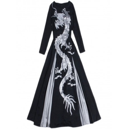 Cette robe réunit la puissance symbolique du dragon traditionnel et l’élégance de la femme moderne : une pièce à la fois majestueuse et subtile. Elle est idéale pour les soirées, les événements artistiques, les célébrations ou galas ou toutes les occasions spéciales : anniversaires, Saint-Valentin, soirées intimes.