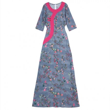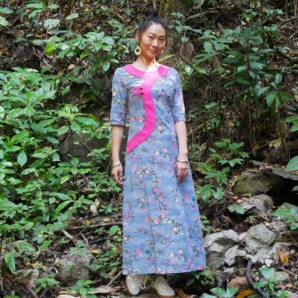 La coupe longue et élancée souligne naturellement la silhouette et donne à la robe une allure élégante et harmonieuse. Les motifs floraux délicats évoquent les branches du printemps et accompagnent les mouvements avec légèreté. Une robe qui mêle élégance orientale, douceur des couleurs et simplicité naturelle. Parfaite pour le quotidien, les voyages, les événements artistiques ou les moments particuliers.