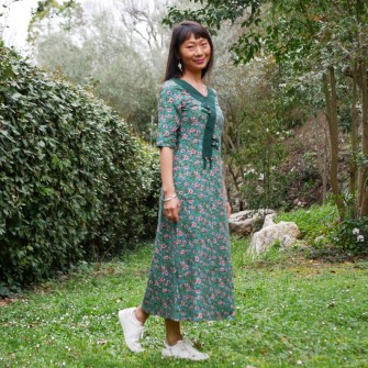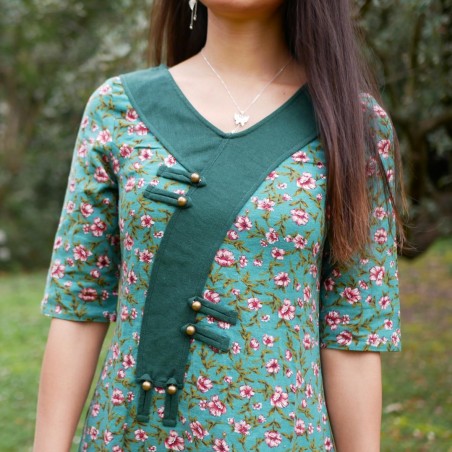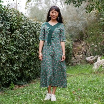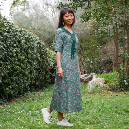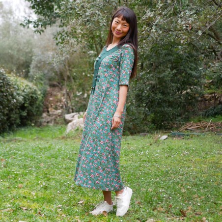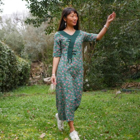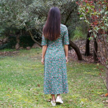 Robe verte à fleurs