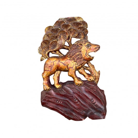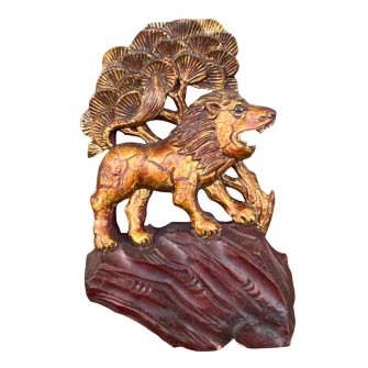 Ce lion très expressif en bois doré est une œuvre du XIXe siècle (époque de la dynastie Qing), que le cadre en bois de couleur noire partiellement ouvert sur le haut met magnifiquement en valeur. Ce type de sculpture était autrefois intégré dans la décoration de lits traditionnels chinois, ou parfois dans des fenêtres à claustra, dont ils ont été démembrés. On peut certes le regretter, mais les lits complets sont maintenant de plus en plus rares et atteignent des sommes considérables, dépendant à la fois de la décoration et des bois dont ils sont constitués. Vous en verrez une illustration sur le lien suivant: