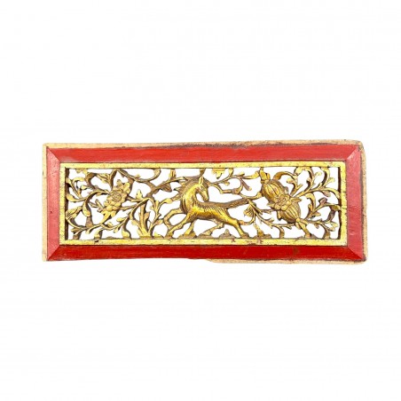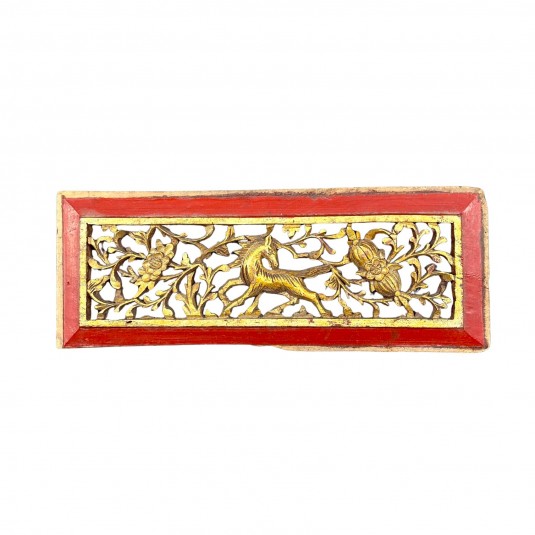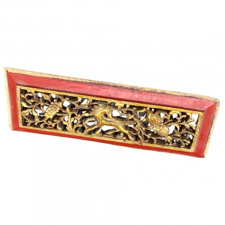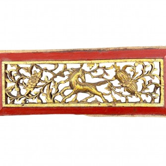 Ce splendide cheval plein d'énergie et d'autorité en bois doré est une œuvre du XIXe siècle (époque de la dynastie Qing), que le cadre en bois de couleur noire partiellement ouvert sur le haut met magnifiquement en valeur. Ce type de sculpture était autrefois intégré dans la décoration de lits traditionnels chinois, ou parfois dans des fenêtres à claustra, dont ils ont été démembrés. On peut certes le regretter, mais les lits complets sont maintenant de plus en plus rares et atteignent des sommes considérables, dépendant à la fois de la décoration et des bois dont ils sont constitués. Vous en verrez une illustration sur le lien suivant: