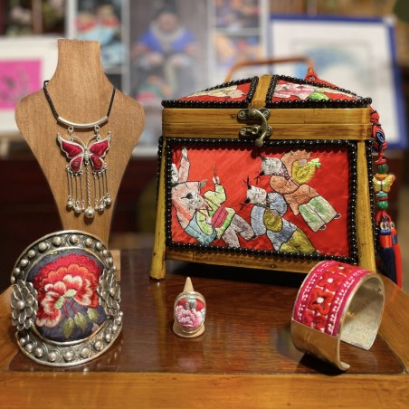 Sac broderie Hmong Vietnam Ce sac a été réalisé par un artisan Hmong du Vietnam. Les Hmong sont des cousins des Miao de... Prix 49,00 € Ajouter au panier