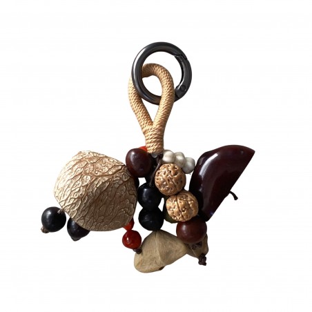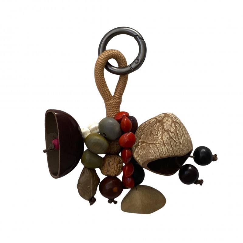 Ce carillon à vent, ou carillon éolien, est entièrement réalisé avec des coques de fruits naturels. Accroché en extérieur, sur une terrasse ou dans un jardin, au moindre souffle il produira un son harmonieux, discret et délicat, en symbiose avec les bruits de la nature, créant une ambiance zen et reposante. De petite taille, il peut s'accrocher à un sac, voire à la ceinture et vous accompagner lors de vos déambulations.