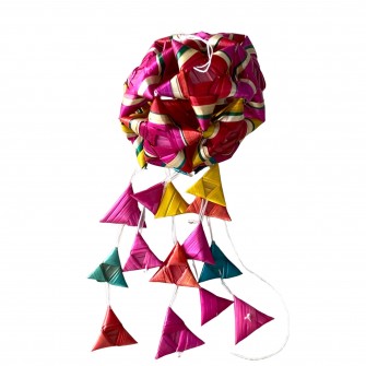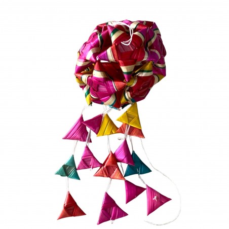 Comme pour les célèbres papiers découpés chinois, les Chinois maîtrisent l'art du pliage pour réaliser des décorations de fête en particulier à l'occasion du nouvel an chinois. Cette boule à suspendre aux airs de lanterne en est une magnifique illustration.