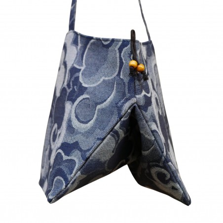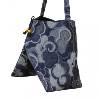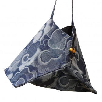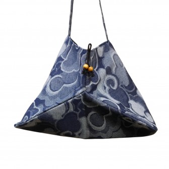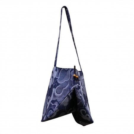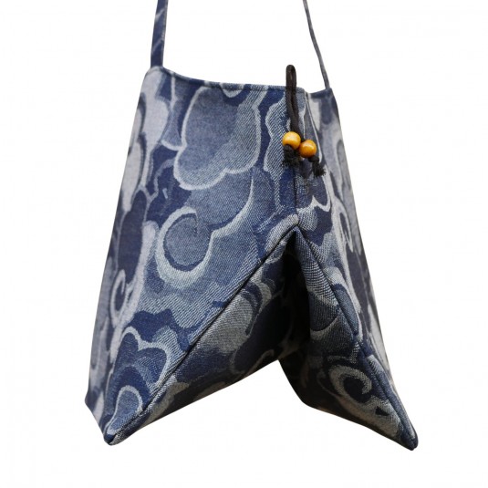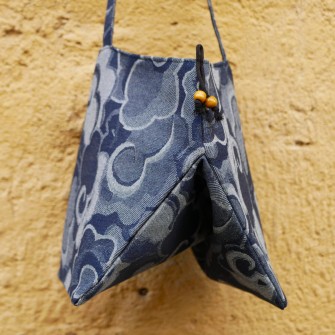 Sac à main ethnique de la minorité ethnique Zhuang très original, présentant une forme à quatre pans, rectangulaires à sa base, pouvant se resserrer naturellement selon son contenu.