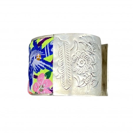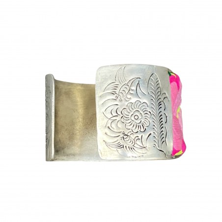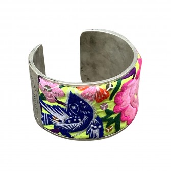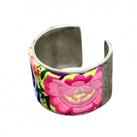 Bracelet en argent et broderie Miao ancienne Au Camélia