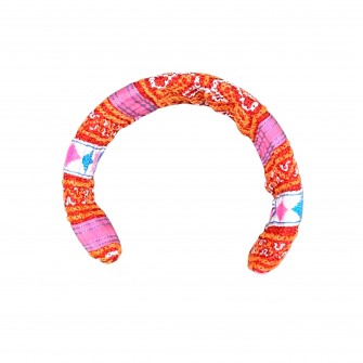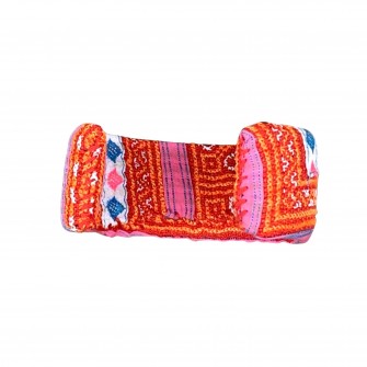 L'originalité de ce bracelet, outre sa couleur orangée éclatante, est qu'il est entièrement recouvert de broderies. la structure intérieure est en argent Miao traditionnel, si bien que ce bracelet relativement souple et léger peut s'adapter à toutes sortes de poignets.